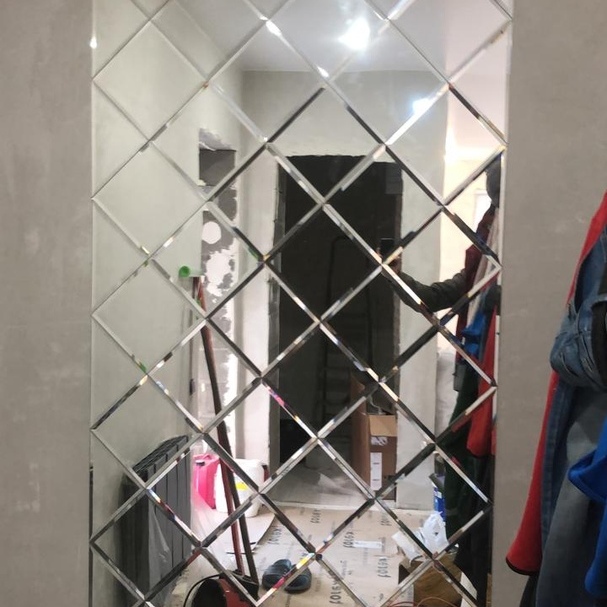 Использована зеркальная плитка "вытянутый ромб" с фацетом.
